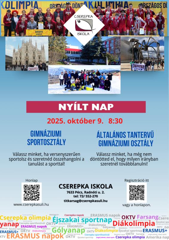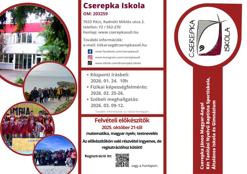 2026. március 9-12 között szóbeli meghallgatás a Cserepka Iskolában (időpontfoglalás alapján).