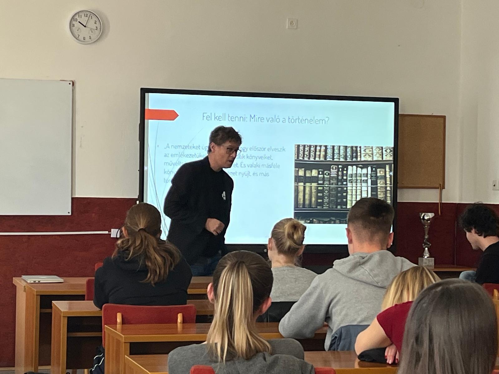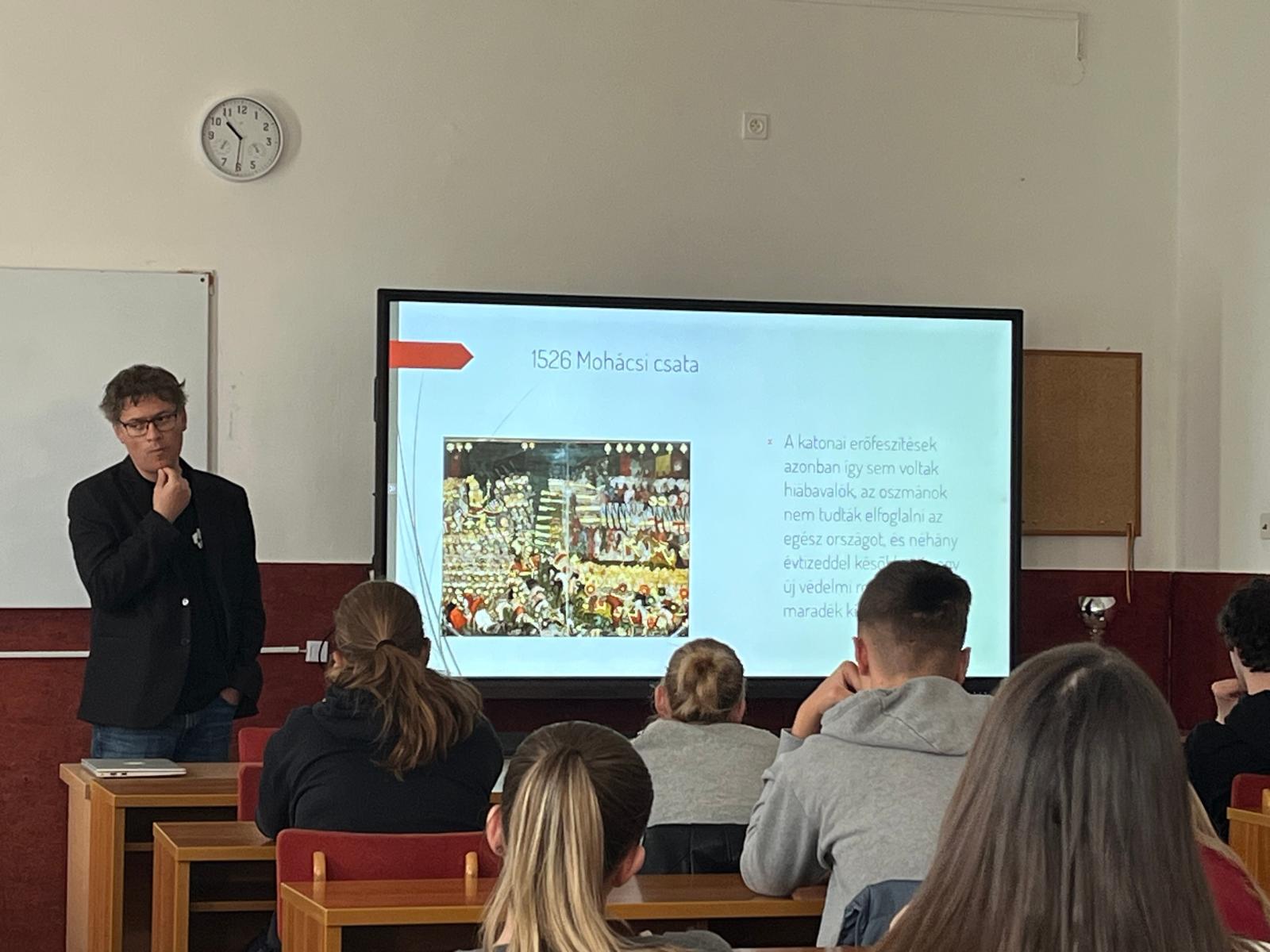 A mohácsi csatához kapcsolódó kutatássorozat avatott szakembere a gimnazistáknak tartott előadást az 1526-os csata előzményeiről, az ezzel kapcsolatos tévhitekről, illetve a helyes történelemértelmezésről. A legfrissebb történettudományi kutatások eredményeiből szemezgetve a történész elmondta, hogy miként és miért jutott el az ország a mohácsi csatáig, tényleg gyenge volt-e a magyar királyság, vagy egyéb okok vezettek a tragédiához. Választ keresett a kérdésre, hogy vajon volt-e lehetőség a győzelemre, vagy volt-e esély egy jobb forgatókönyvre az elkövetkező 150 év magyar társadalma számára.