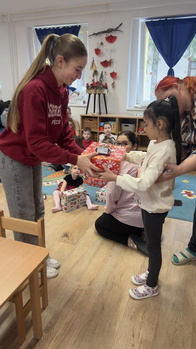 Az oviban nagyon kedves fogadtatásban részesültünk. Egy rövid kis műsor után diákjaink átadták a névre szóló csomagokat a gyerekeknek. Öröm volt látni azt a lelkesedést, amivel kibontották a kicsik az ajándékokat, illetve azt, hogy mennyire hálásak voltak érte. Az ajándékátadást követően közös játékkal, majd Luca-napi búza ültetésével zártuk a délelőttöt.