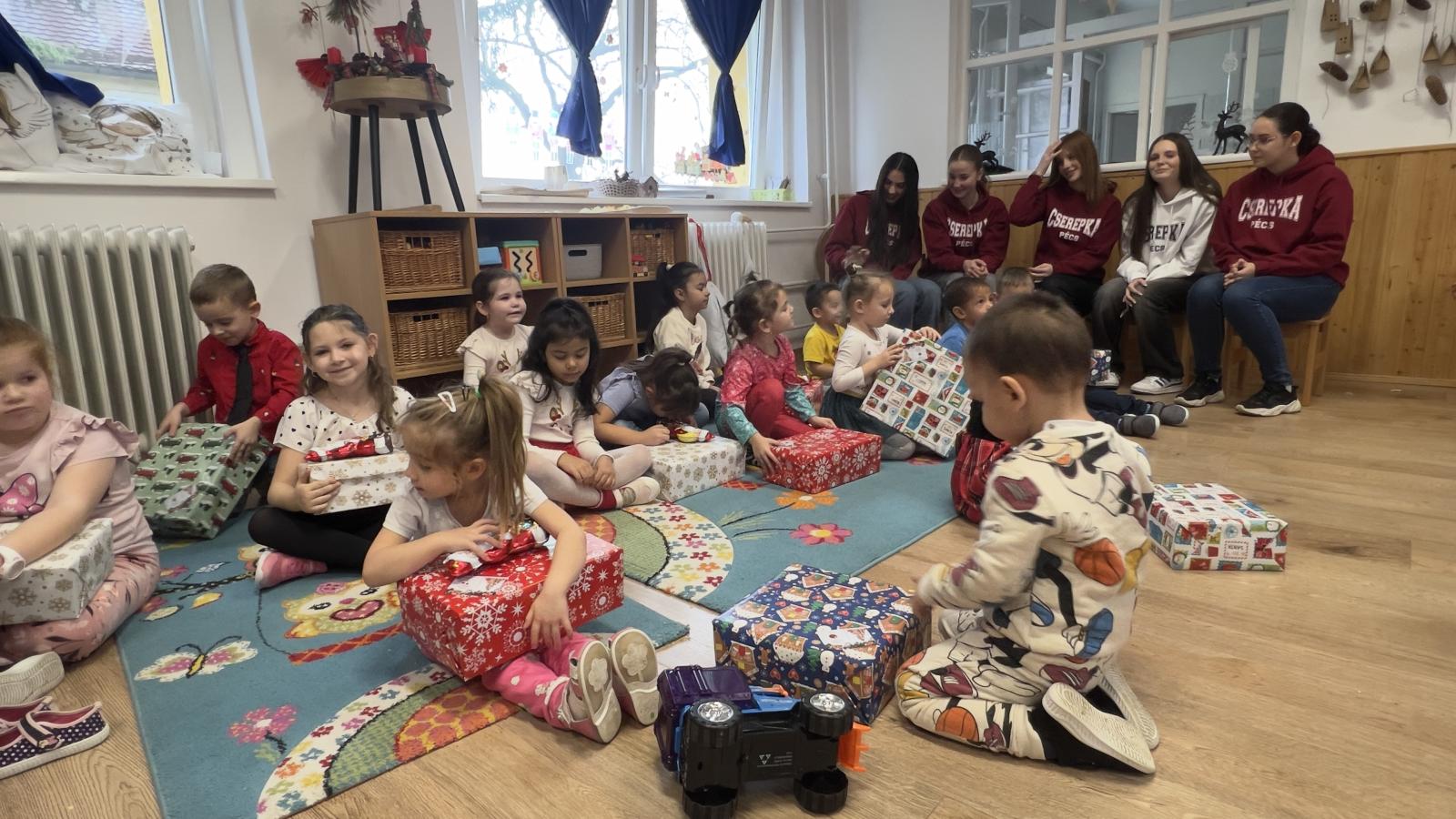 December 13-án néhány tanulónkkal ellátogattunk a szentdénesi óvodába, hogy ajándékokat vigyünk az oda járó 20 kisgyereknek. A látogatásra izgatottan készültünk, cserepkás tanulóink a megelőző napokban szívvel-lélekkel állították össze az ajándékcsomagokat.
